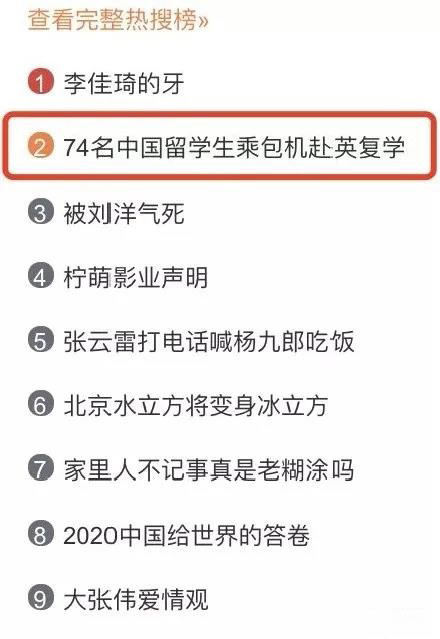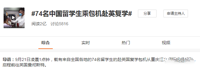 这两天#74名中国留学生乘包机赴英复学#冲上微博热搜第二,瞬间引发舆论对英国留学生的高度关注。