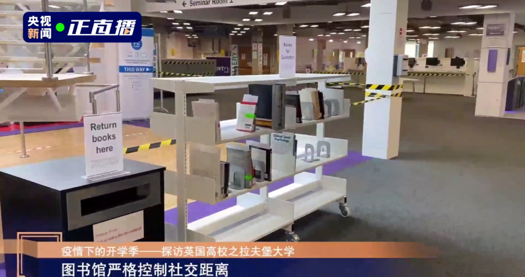 原先图书馆的小组讨论区也严格控制社交距离,换成单人单桌。拉夫堡大学同时考虑到可能由于图书馆人数限制会对学生造成不便,还延长图书馆开放时间至每天凌晨两点。另外在寻找书籍阅读的地方,也设置了单一方向的箭头指引以及黄色的等待距离标识,保证学生的安全。