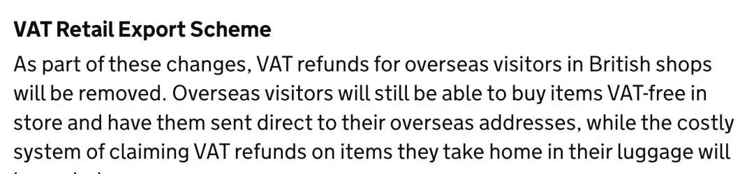 据了解,英国政府之所以会做出这样的决策,一方面是因为英国即将脱欧,考虑到退税制度或许无法真正让消费者享受到好处,且与国际税收原则不符,因此取消。