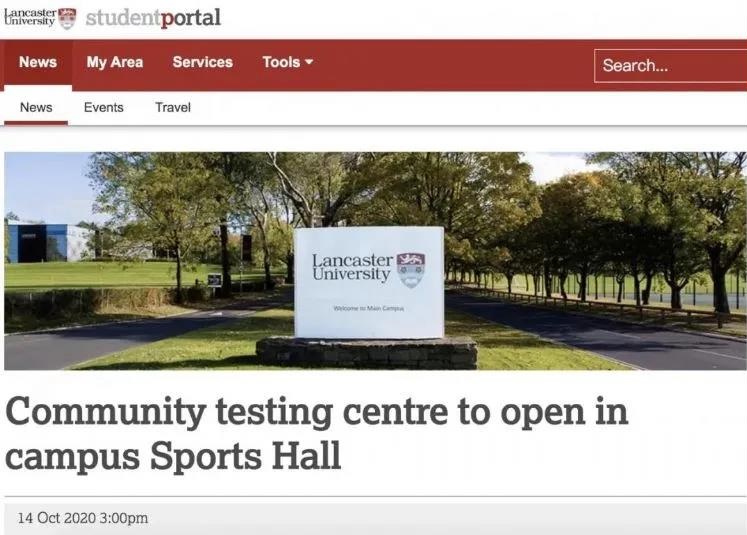 兰卡斯特大学在Sports Hall建立了一个新冠检测中心,并于10月16日正式开放,出现症状的学生和教职员工可以接受检测。检测中心开放时间为每日上午8点至晚上20点,并且将至少开放三个月,而Sports Centre将始终保持开放状态。